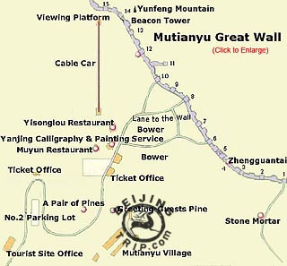 The Mutianyu Great Wall lies in Huairou District, 73 kilometers (45.4 miles) from Beijing proper. It is a superb location to appreciate the grandness of the Great Wall as well as to avoid the crowds at Badaling.